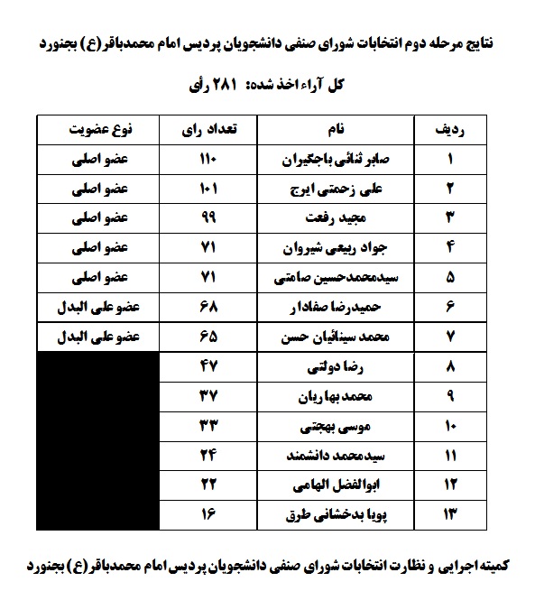 نتایج مرحله دوم انتخابات شورای صنفی دانشجویان