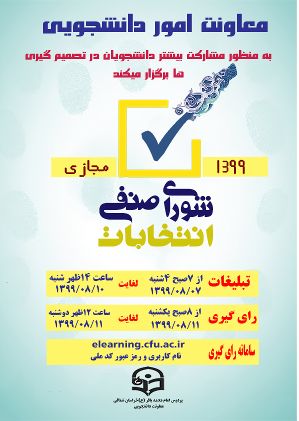 مهلت انتخابات شورای صنفی تا ساعت 12 سه شنبه مورخه 99/08/13 تمدید شد.