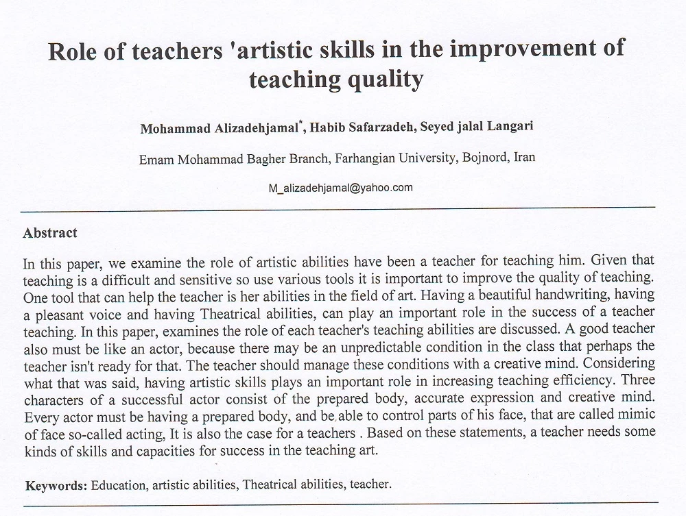 Role of teachers 'artistic skills in the improvement of teaching quality