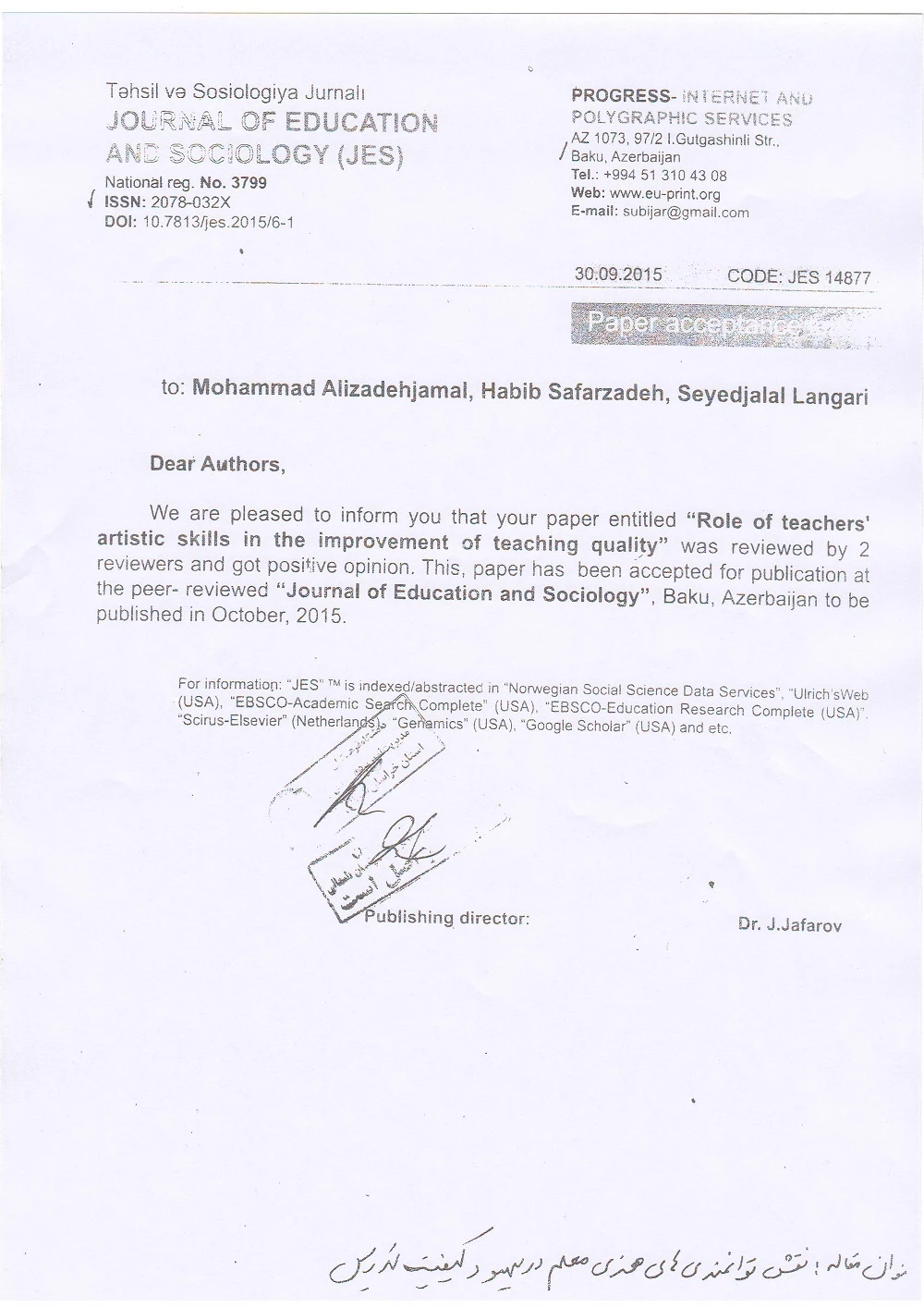 Mohammad Alizadehjamal, Habib Safarzadeh, Seyed jalal Langari