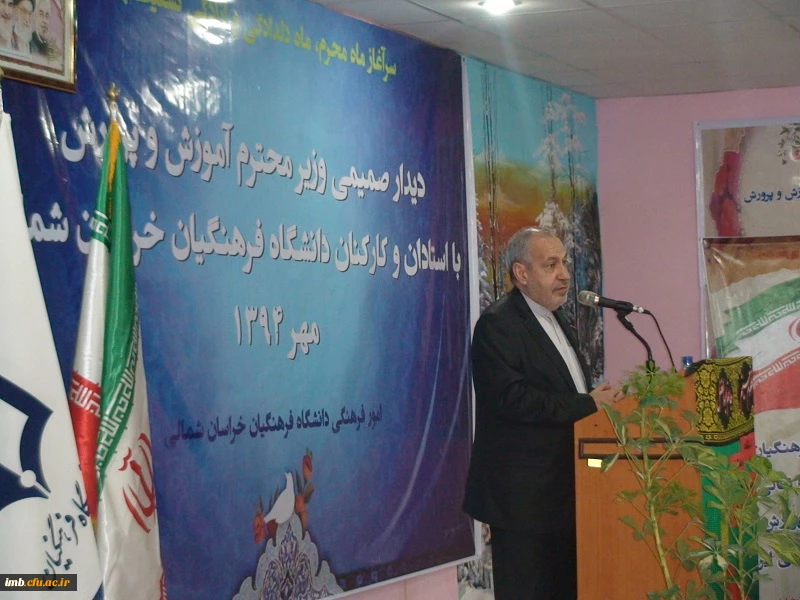 حضور دکتر فانی وزیر آموزش و پرورش در دانشگاه فرهنگیان خراسان شمالی دانشگاه فرهنگیان یکی از مهمترین اولویت های وزارت آموزش و پرورش است که نقش استراتژیک در بهسازی و تربیت نیروی انسانی متخصص دارد. 3