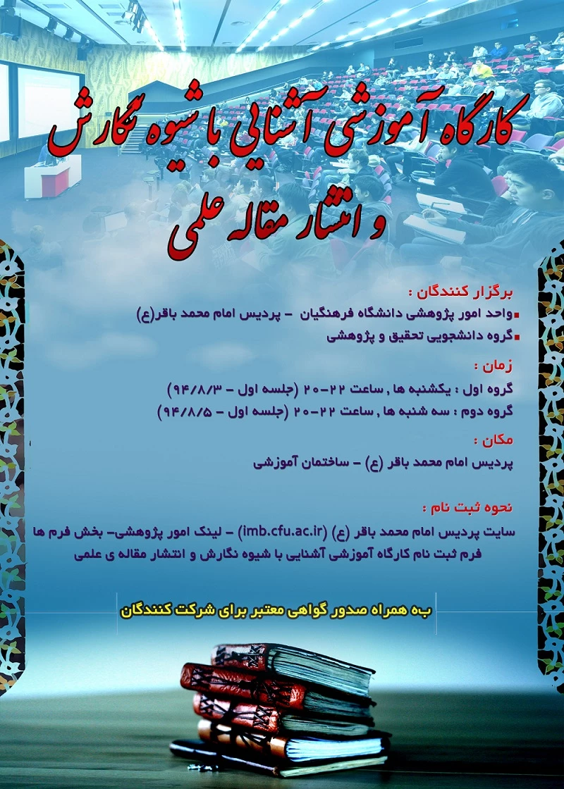 امتیاز دهید : ثبت نام کارگاه آشنایی با شیوه نگارش و انتشار مقاله های علمی 2 سهشنبه 28 مهر 1394 ساعت 13:21