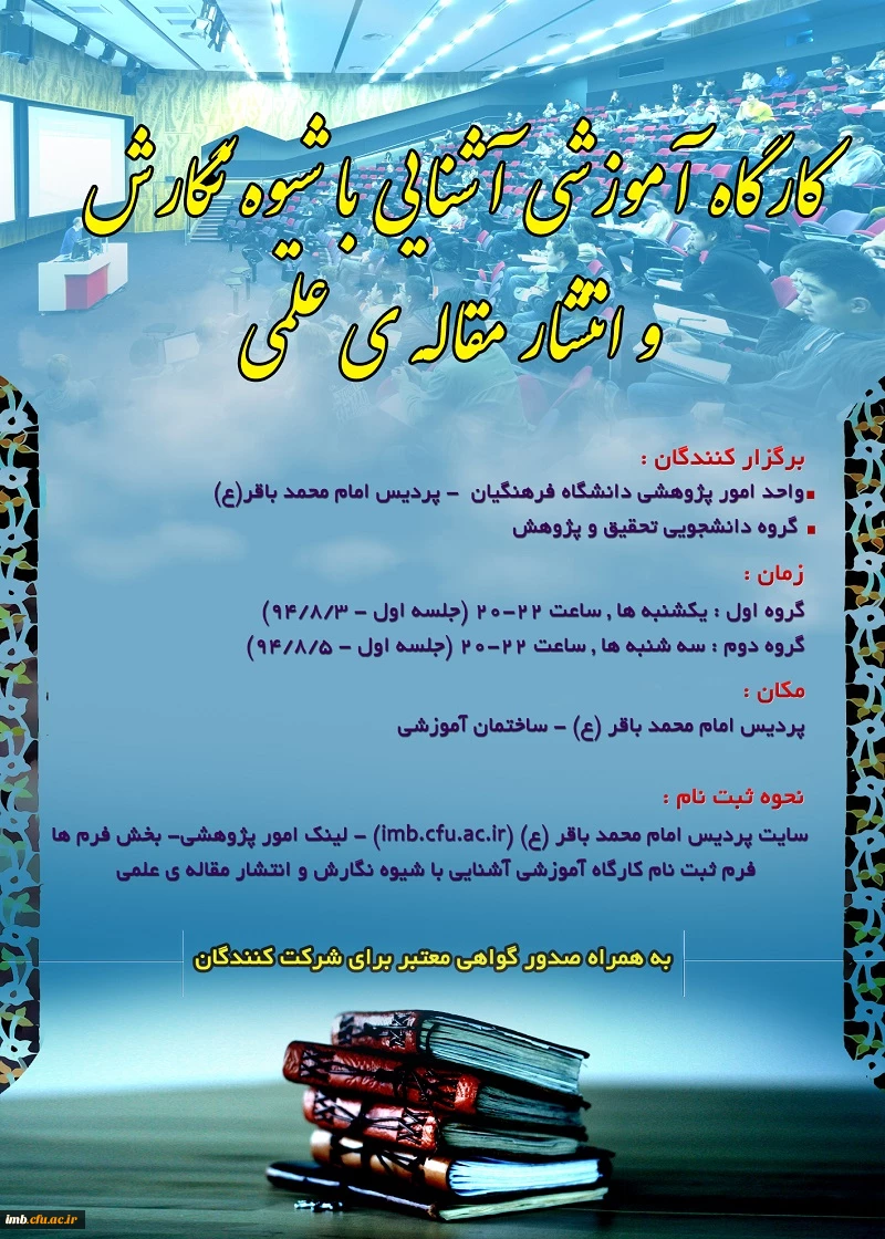 امتیاز دهید : ثبت نام کارگاه آشنایی با شیوه نگارش و انتشار مقاله های علمی 3 سهشنبه 28 مهر 1394 ساعت 13:21