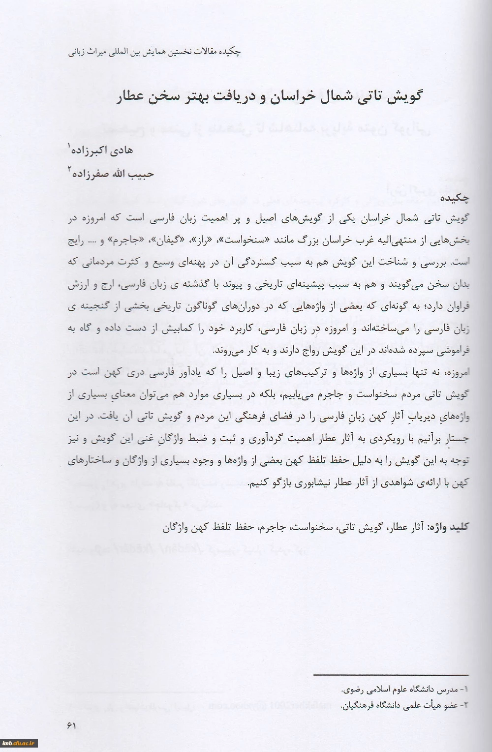 مقاله گویش تاتی شمال خراسان و دریافت بهتر سخن عطار 2