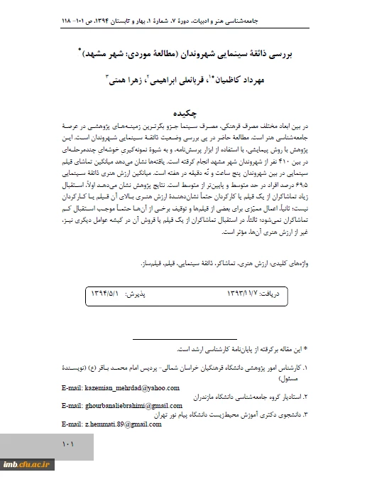 امتیاز دهید : مقاله بررسی ذائقه سینمایی شهروندان (مطالعه موردی: شهر مشهد) 2 دوشنبه 14 دی 1394 ساعت 9:55
