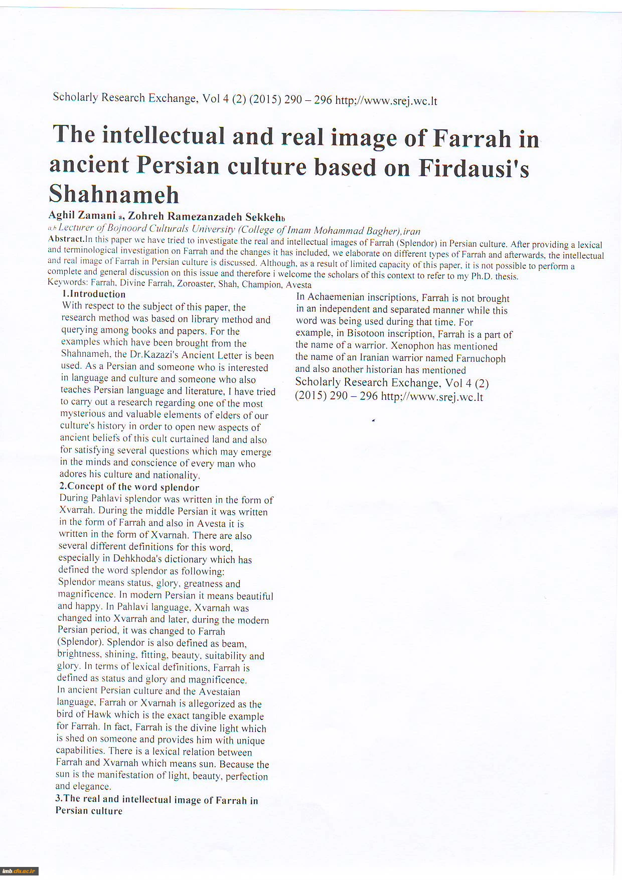 The intellectual and real image of Farrah in ancient Persian culture based on Firdausi s Shahnameh 2