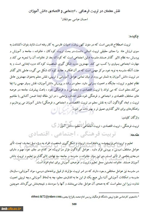 مقاله نقش معلمان در تربیت فرهنگی، اجتماعی و اقتصادی 3