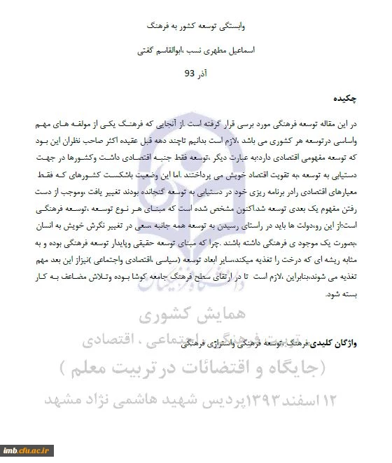 مقاله وابستگی توسعه کشور به فرهنگ 3