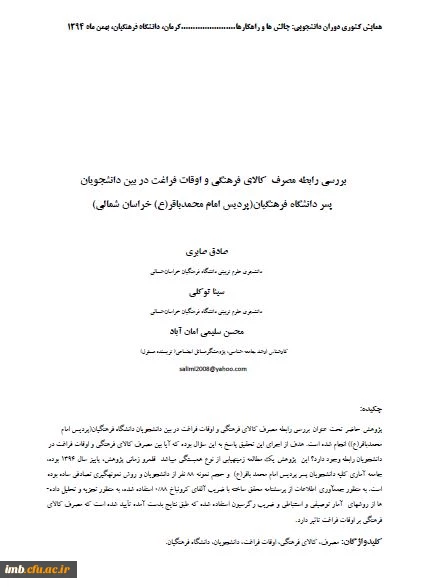 مقاله بررسی رابطه مصرف کالای فرهنگی و اوقات فراغت در بین دانشجویان پسر دانشگاه فرهنگیان (پردیس امام محمد باقر (ع) خراسان شمالی) 2