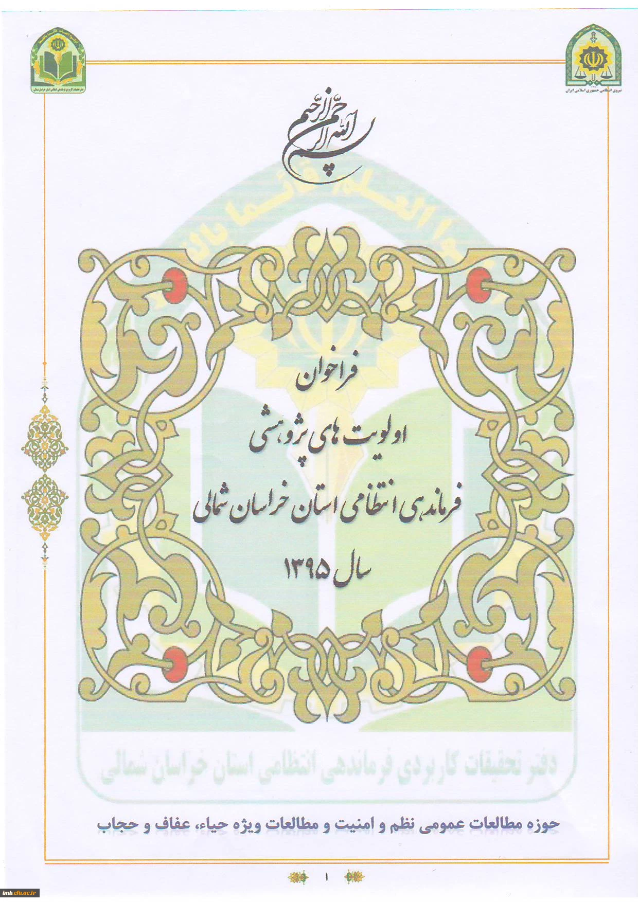 امتیاز دهید : فراخوان اولویت های پژوهشی فرماندهی انتظامی خراسان شمالی 2 دوشنبه 6 اردیبهشت 1395 ساعت 11:31