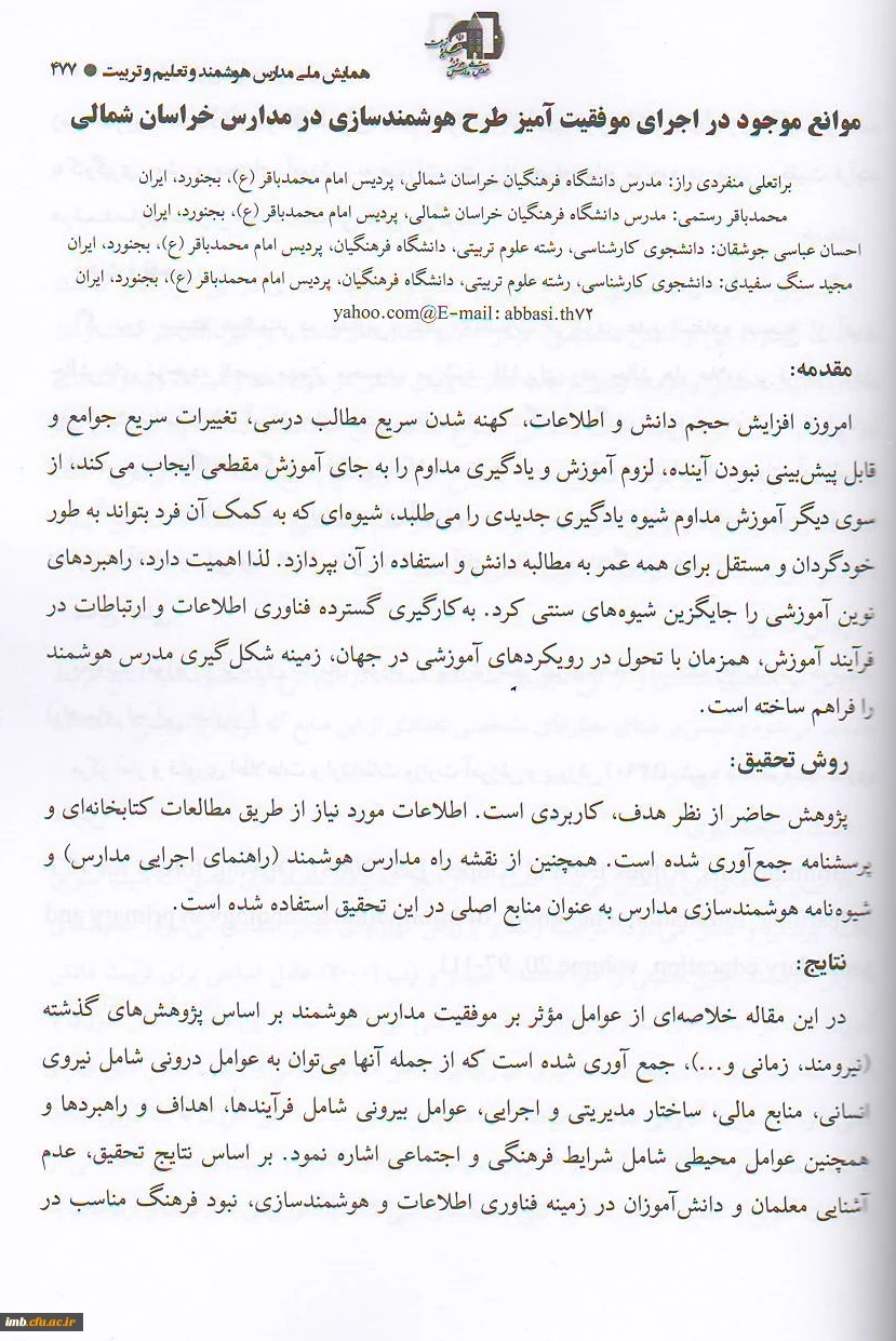 امتیاز دهید : مقاله موانع موجود در اجرای موفقیت آمیز طرح هوشمندسازی در مدارس خراسان شمالی 4 چهارشنبه 19 خرداد 1395 ساعت 8:00