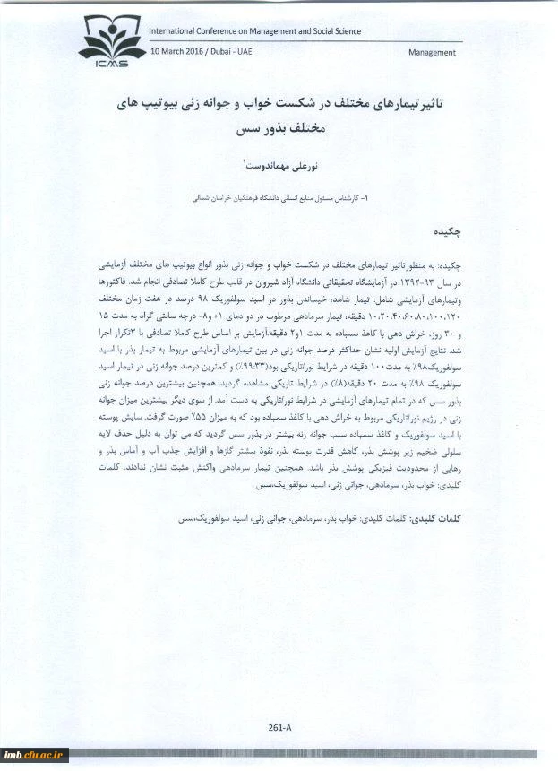 امتیاز دهید : تأثیر تیمارهای مختلف در شکست خواب و جوانه زنی بیوتیپ های مختلف بذور سس 4 چهارشنبه 19 خرداد 1395 ساعت 8:03