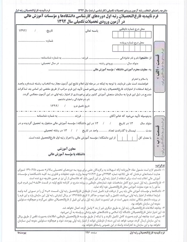 دستورالعمل رتبه های اول کارشناسی ناپیوسته سال 95 2