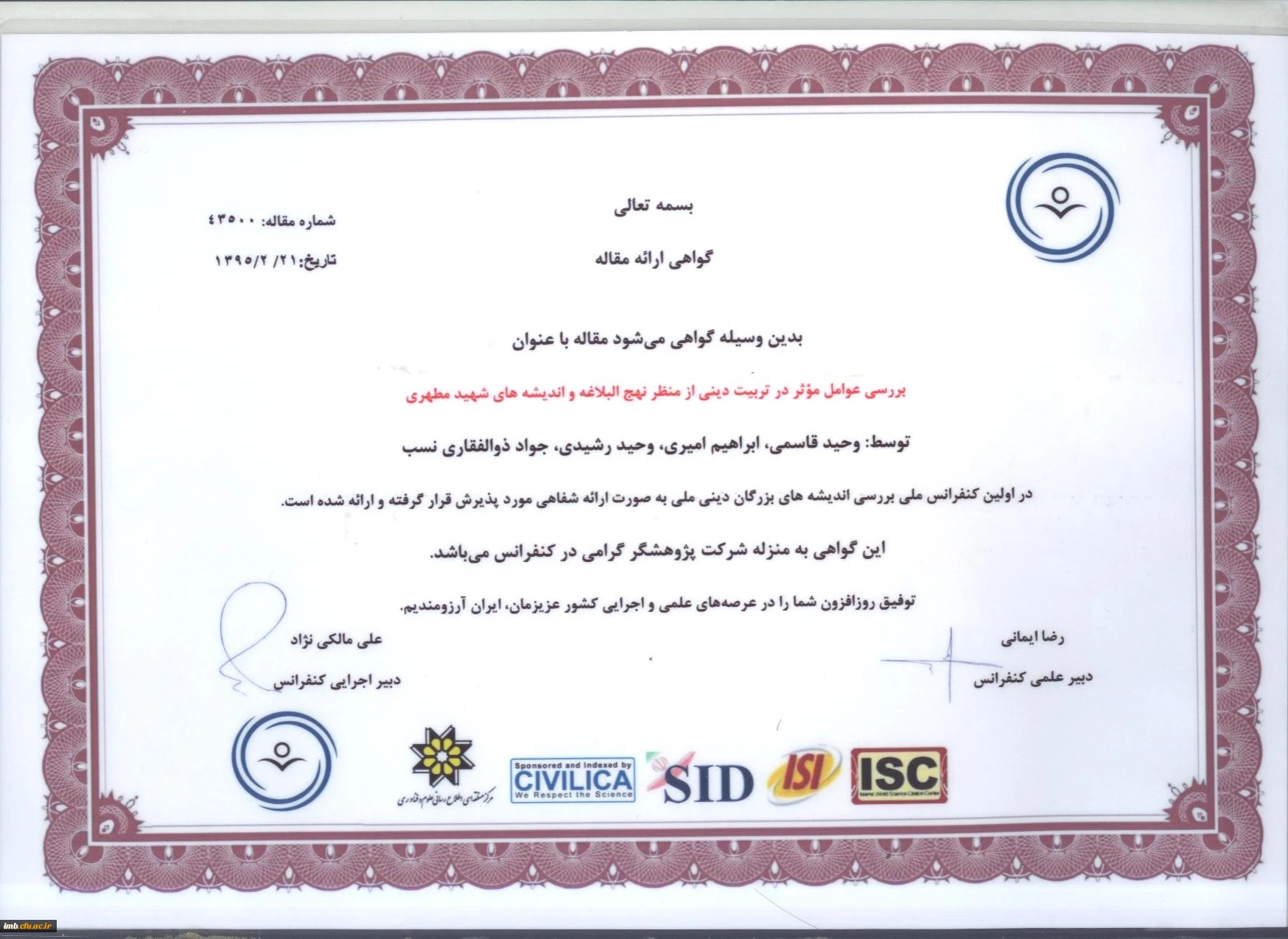 مقاله بررسی عوامل مؤثر در تربیت دینی از منظر نهج البلاغه و اندیشه های شهید مطهری 2