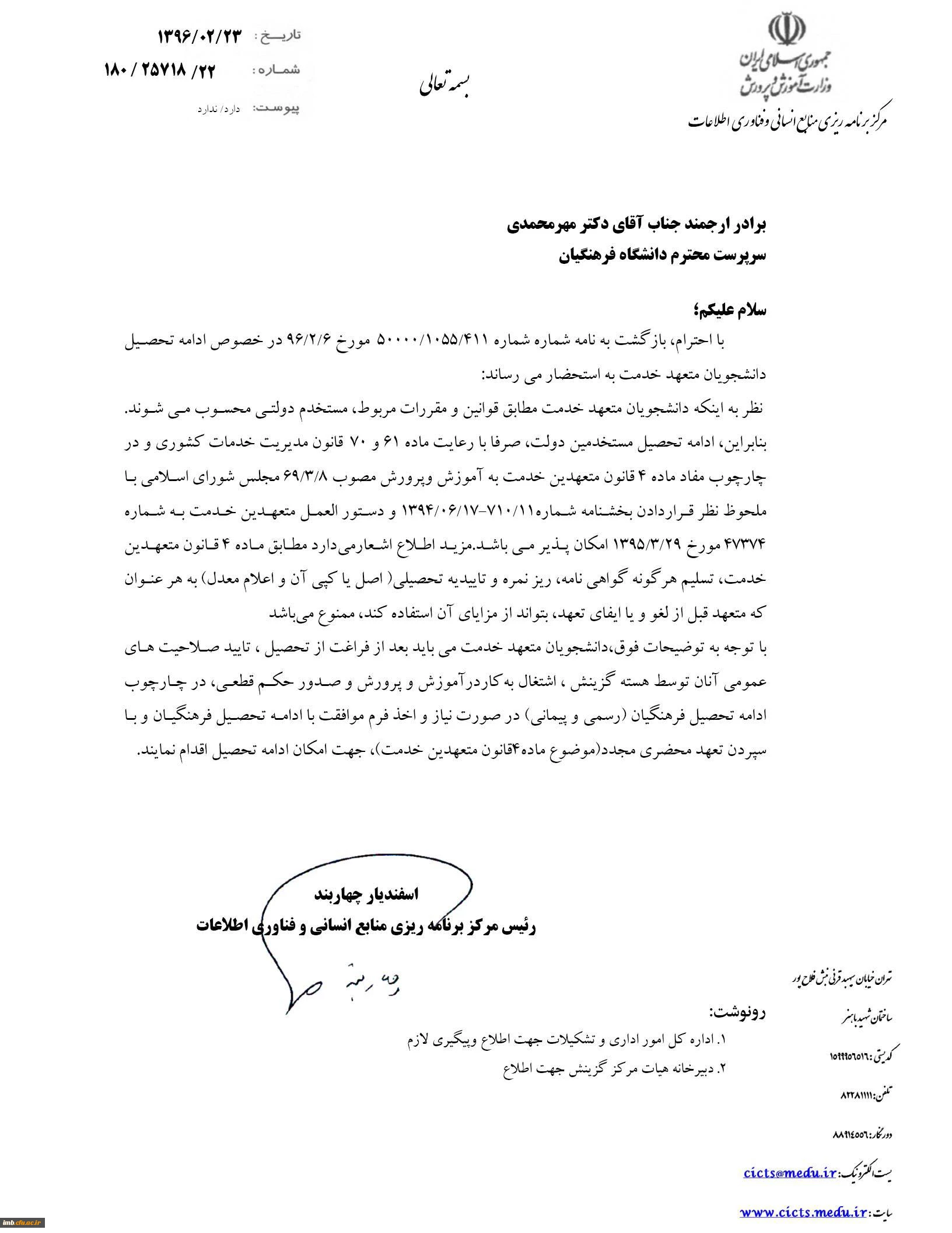 نحوه ادامه تحصیل دانشجویان متعهد خدمت 2