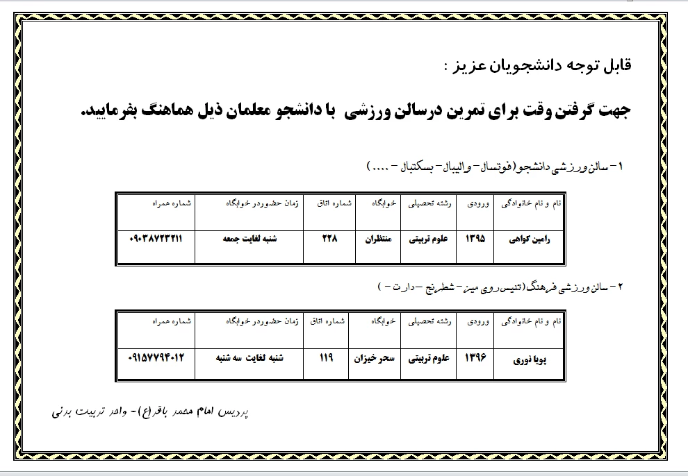 گرفتن وقت برای تمرین درسالن ورزشی 2