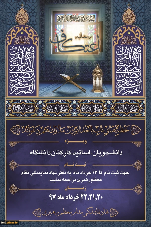 امتیاز دهید : برگزاری اعتکاف رمضانیه ویژه دانشجویان، اساتید و کارکنان دانشگاه ها 2 یکشنبه 6 خرداد 1397 ساعت 13:50