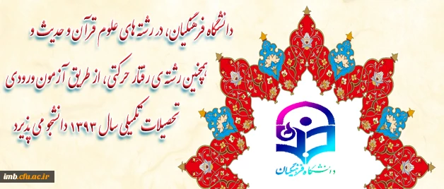 دکتر ساکی، خبر داد: دانشگاه فرهنگیان، در رشته های علوم قرآن و حدیث و همچنین رشته ی رفتار حرکتی، از طریق آزمون ورودی تحصیلات تکمیلی سال 1393 دانشجو می پذیرد