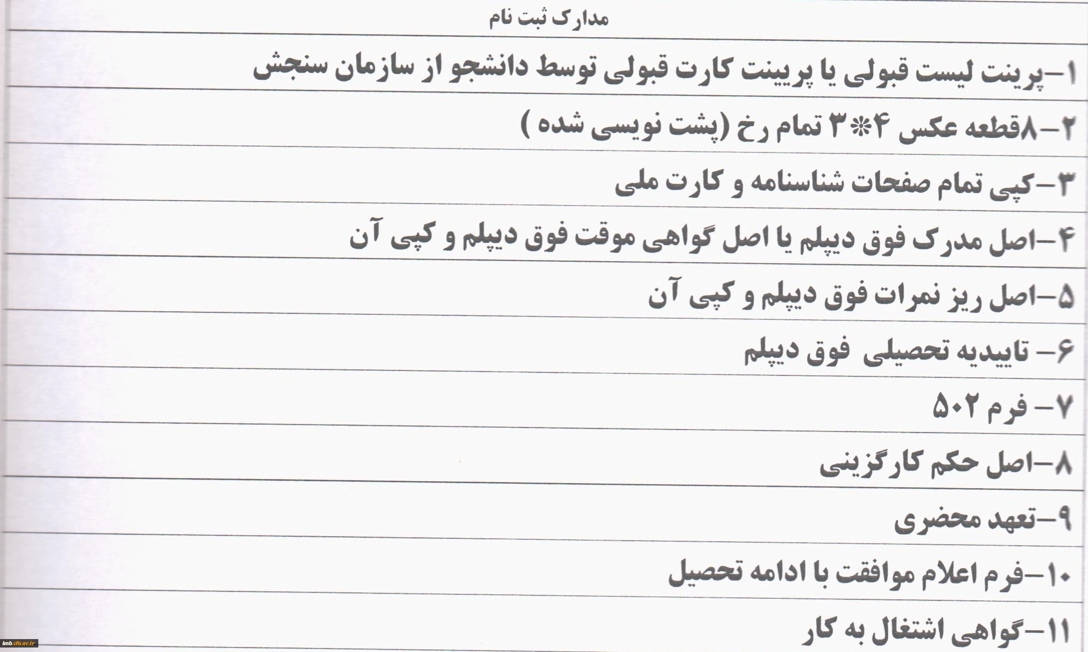 امتیاز دهید : مدارک مورد نیاز ثبت نام دانشجویان پذیرفته شده کارشناسی ناپیوسته 2 سهشنبه 3 مهر 1397 ساعت 14:20