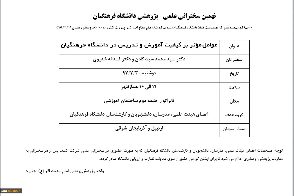 نهمین سخنرانی علمی-پژوهشی دانشگاه فرهنگیان 2