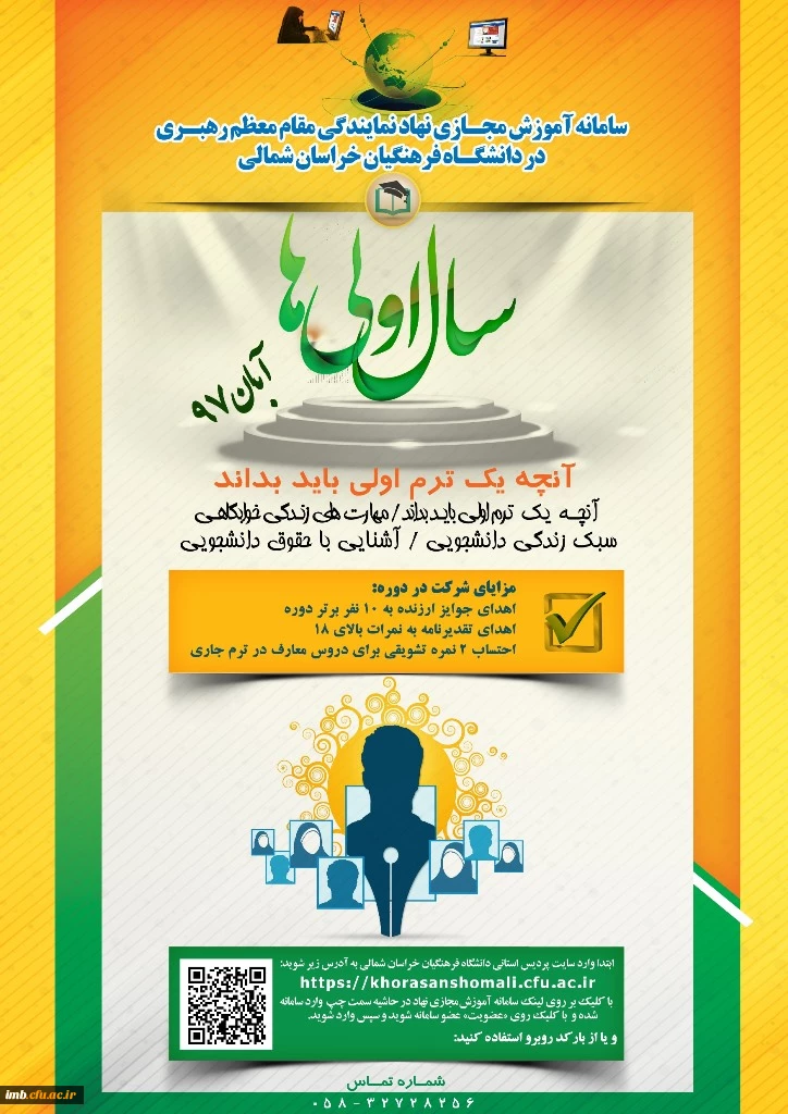 دفتر نهاد رهبری در دانشگاه فرهنگیان خراسان شمالی برگزار می نماید دوره آموزش مجازی «سال اولی ها» ویژه دانشجومعلمان جدیدالورود 2