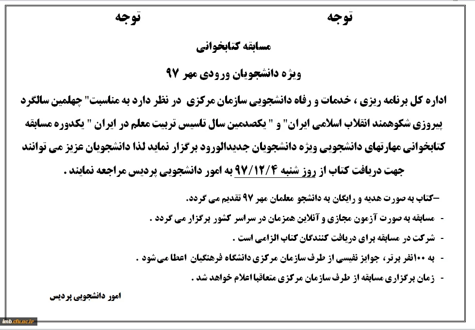 مسابقه کتابخوانی ویژه دانشجویان ورودی مهر 97 2
