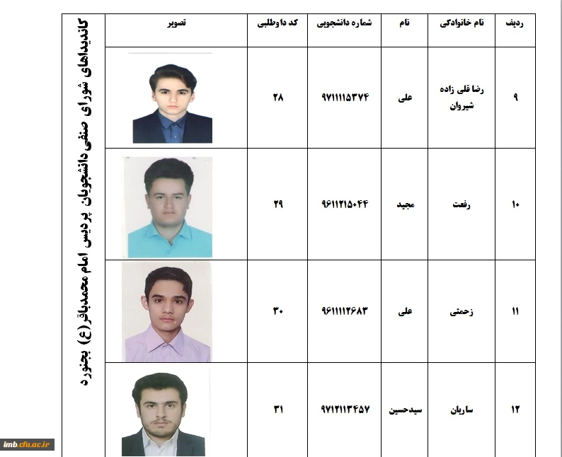 اسامی کاندیداهای شورای صنفی دانشجویی پردیس امام محمدباقر(ع)  2