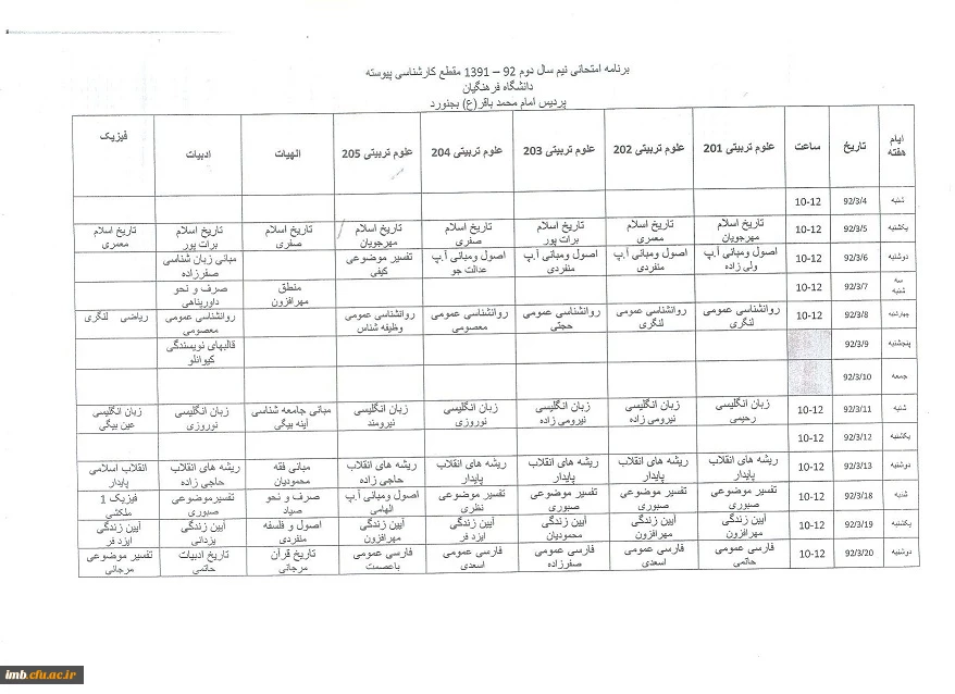 1برنامه امتحانات نیمسال دوم 92-91
